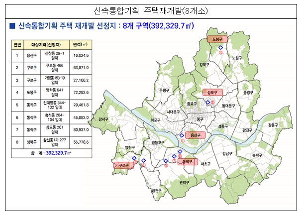 신속통합기획 주택재개발 선정지 8곳 ‘신규 지정’, 투기 방지… 7.29.부터 1년간 발효