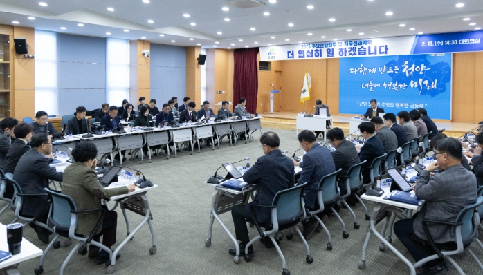 청양군이 선도적인 군정 추진을 위해 19일 군청 대회의실에서 실・과, 사업소, 읍・면장 등 60여 명이 참석한 가운데 ‘2025년 주요 현안 업무 계획 및 직무 성과계약 과제 보고회’를 개최했다.