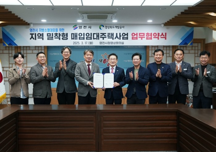 영천시는 17일 시청 영상회의실에서 경상북도개발공사와 지역밀착형 매입임대주택 공급 및 운영과 관련한 업무협약(MOU)을 체결했다.