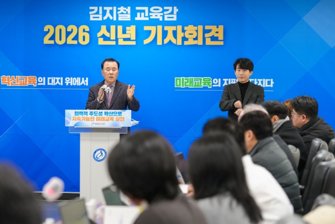 김지철 충남교육감은 8일, 도교육청 회의실에서 ‘2026 신년 기자회견’을 열고, ‘2025년 주요 성과와 2026년 12대 중점 추진 과제’를 발표했다.
