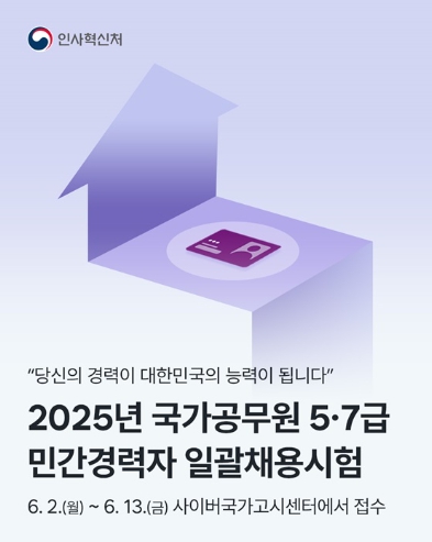 원서접수: 2025. 6. 2.(월)부터 6. 13.(금)까지 사이버국가고시센터에서 접수.