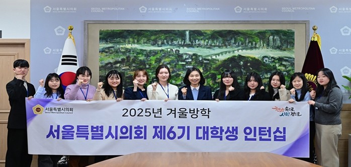 서울특별시의회 최호정 의장(국민의힘, 서초4)은 6일 의회 본관 의장접견실에서 제6기 겨울방학 대학생 인턴 11명과의 간담회를 개최했다.