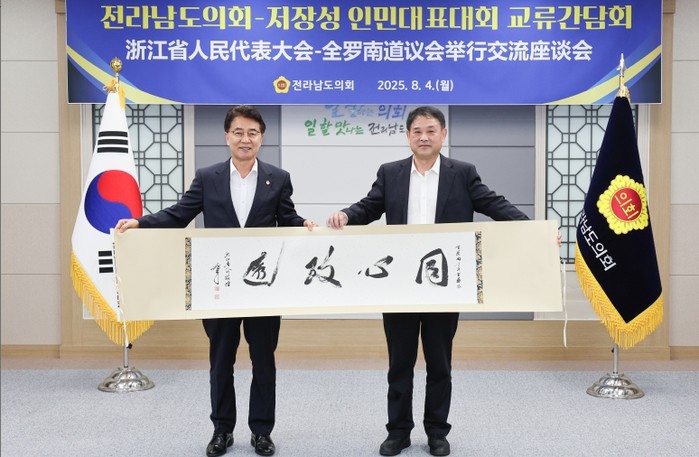 전라남도의회는 4일 오후 도의회에서 중국 저장성 인민대표대회 대표단을 공식 접견하고, 양 지역 지방의회 간 우호 교류 및 협력 확대 방안을 논의했다.