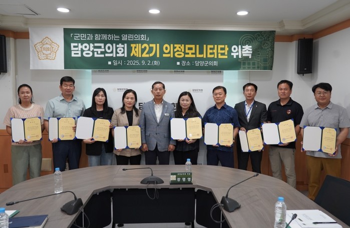 담양군의회는 2일 의회 중회의실에서 제2기 의정모니터단 위촉식 및 간담회를 개최했다고 밝혔다.