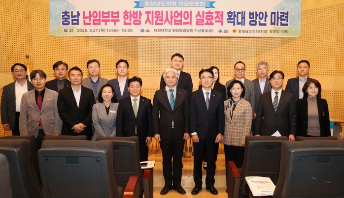 충남도의회는 27일 대전대학교 천안한방병원에서 ‘충남 난임부부 한방 지원사업의 실효적 확대 방안 마련’을 주제로 의정토론회를 개최했다.