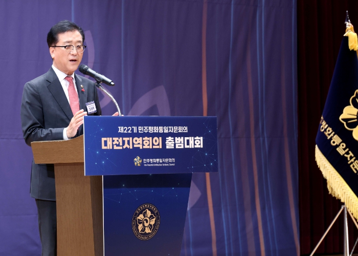 대전시의회 조원휘 의장은 21일 대전시청에서 개최된 제22기 민주평화통일자문회의 대전지역회의 출범식에 참석해 축하의 인사를 전하며, 대한민국의 온전한 평화와 번영을 위해 힘써주실 것을 당부했다.