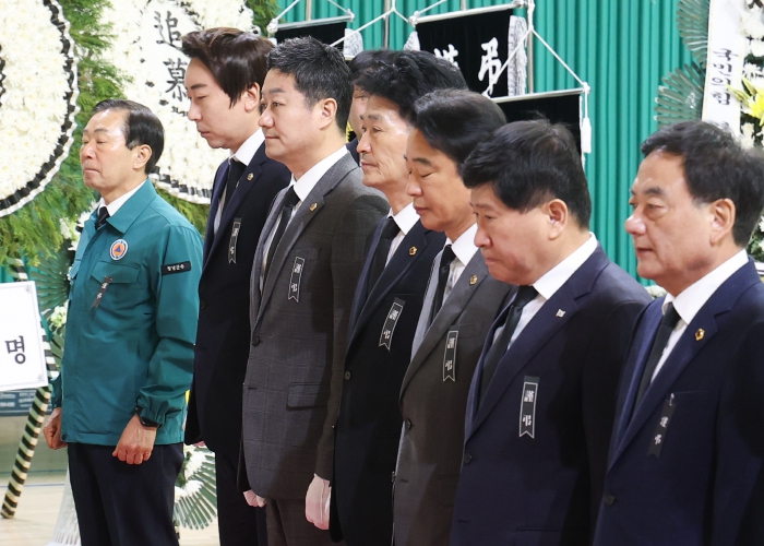 김 의장은 이날 경남 김해에서 열린 ‘대한민국 시도의회 의장협의회 제2차 임시회’를 마친 후 전국 시도의회 의장들과 함께 합동분향소를 찾아 산청 산불로 숨진 진화대원과 공무원 등의 영정 앞에서 헌화하고 묵념했다.