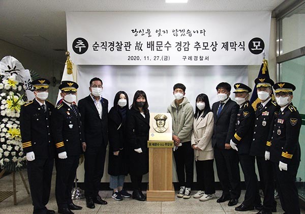 이번 제막식에는 코로나 방역수칙을 준수하여 구례경찰서장, 동료직원, 유족 등 20여 명이 참석한 가운데 고인에 대한 묵념, 약력 보고, 헌화 및 분향, 추념사 순으로 진행되었다.