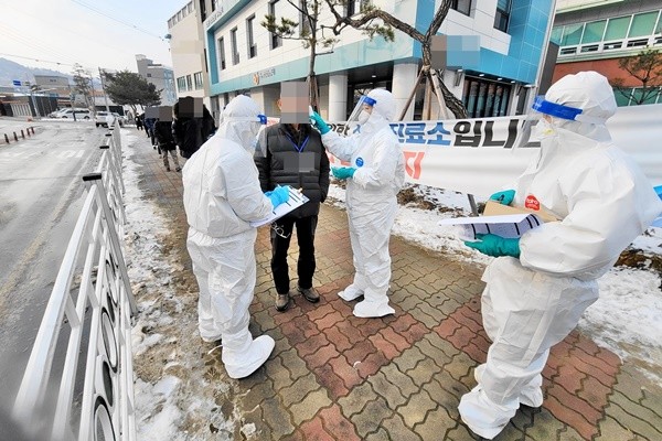 충북 영동군 보건 종사자들은 경북지역과 경계선이 맞닿은 곳으로 코로나19 대유행에도 명철하게 대처해 충북에서도 청정지역으로 유지해 왔었다.