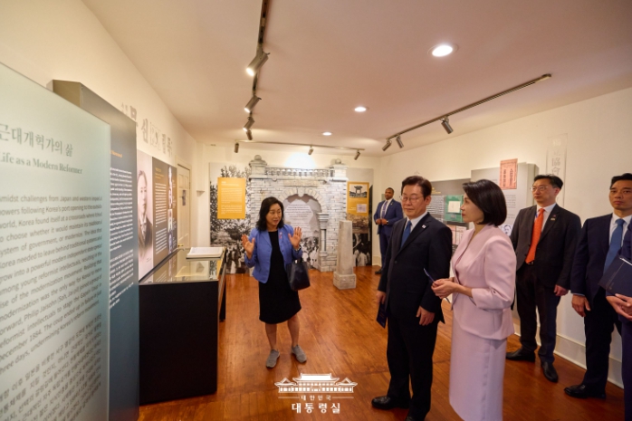 이재명 대통령과 김혜경 여사는 27일 미국 필라델피아에 있는 서재필기념관(서재필기념재단 이사장 최정수)을 방문하여 기념관 시설을 둘러보고 재단 관계자들을 격려했다.