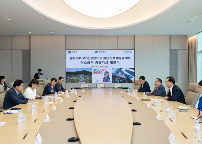 경주시는 8월 1일 서울 포스코센터 회의실에서 경북도, 포스코홀딩스와 소형모듈원전(SMR) 1호기 경주 유치와 원전전력의 활용 협력을 위한 업무협약을 체결했다.