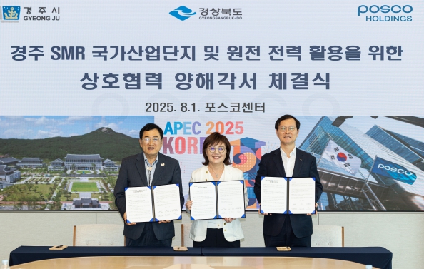 경북도는 1일 서울 포스코센터 회의실에서 경주시, 포스코홀딩스와 소형모듈원전(SMR) 1호기 경주 유치와 월성원전 등 원전 전력의 활용 협력을 위한 업무협약을 체결했다.