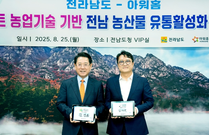 전라남도와 한화 아워홈은 25일 도청에서 ‘스마트 재배관리 솔루션’을 적용한 농산물의 안정적 생산과 유통 활성화를 위한 업무협약(MOU)을 했다.