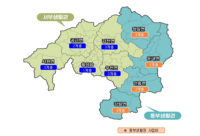 아울러, 이번 동부생활권 구역내에는 지난 3월 강원특별법 농지특례로 지정된 농촌활력촉진지구(안흥체육공원조성)가 별도로 추진될 예정이어서 농촌지역 활성화에 시너지 효과를 발휘할 것으로 보인다.