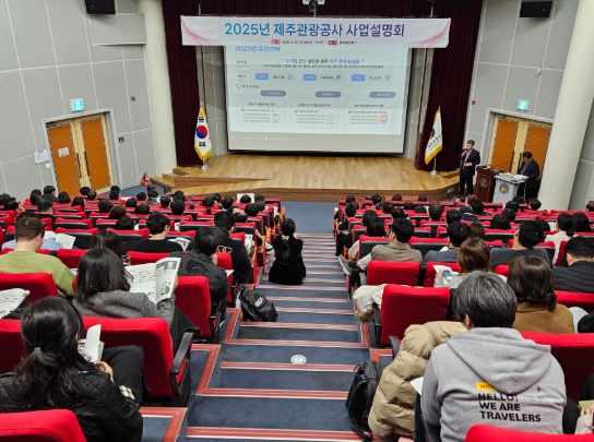 제주관광공사는 14일 제주웰컴센터에서 제주지역 여행사, 숙박업체, 웰니스 인증업체 등 도내 관광사업체와 유관기관 관계자 등을 대상으로 ‘2025년 제주관광공사 사업설명회’를 개최했다.