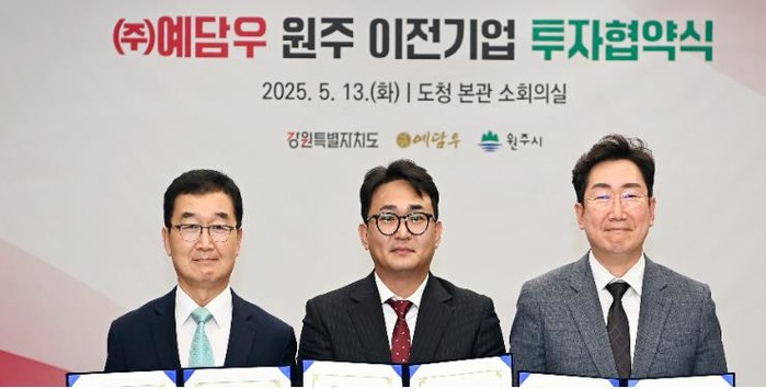 협약식에서는 지성인 ㈜예담우 대표이사, 정광열 강원특별자치도 경제부지사, 원강수 원주시장이 참석했다.