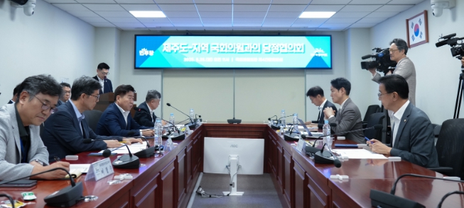 제주특별자치도는 25일 국회 의원회관에서 지역 국회의원들과 당정협의회를 열고 내년도 국비사업과 국정과제 후속 대응 등 주요 현안에 대한 협력 방안을 논의했다.