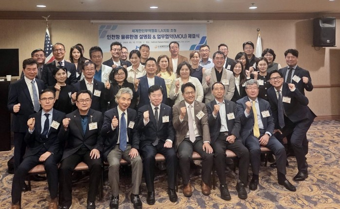 인천항만공사는 15일(현지시각) 미국 로스앤젤레스 옥스포드 호텔에서 세계한인무역협회(OKTA) 로스앤젤레스 지회와 물류 협력 양해각서(MOU)를 체결하고, 미주 한인 경제단체들을 대상으로 인천항 물류 환경 설명회를 성공적으로 개최했다고 밝혔다.