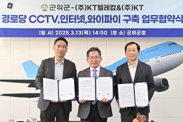 군위군은 지난 13일 ㈜KT텔레캅, ㈜KT와 경로당 CCTV,인터넷, 와이파이 설치 및 운영을 위한 업무협약을 체결했다. 이번 협약은 경로당 이용 어르신들의 안전을 강화하고, 보다 체계적인 보안 시스템을 구축하기 위한 목적으로 진행됐다.