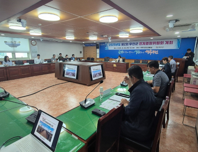전남 무안군은 지난 25일 군청 상황실에서 2025년 제2회 경계결정 위원회를 개최하고 운남면 하묘리 일대와 무안읍 신학리, 청계면 청수리 일대의 3개 지적재조사 사업지구에 대한 새로운 경계를 결정했다.