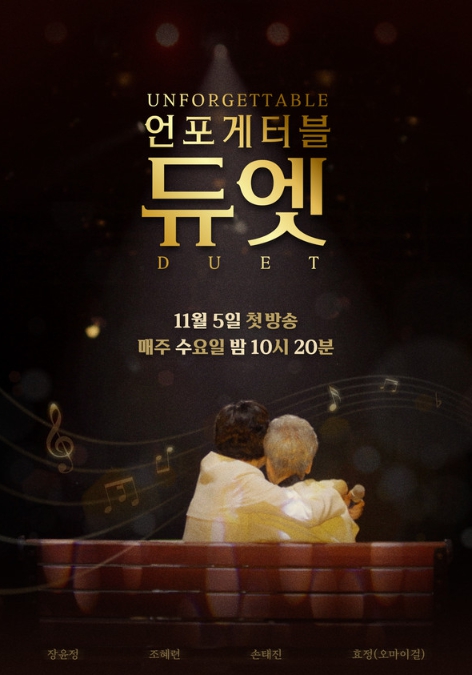 한편, 뭉클한 감동과 환희가 공존하는 리얼리티 뮤직쇼 ‘언포게터블 듀엣’은 오는 11월 5일(수) 밤 10시 20분에 첫 방송된다.