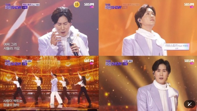 신유는 지난 28일 방송된 SBS FiL, SBS M '더트롯쇼'에 출연해 '러브스토리 (feat. 박애리)'와 '그대와 쌈바' 무대를 선보였다.