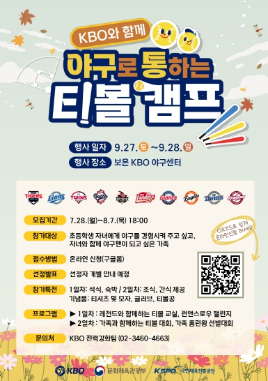 KBO는 ‘2025 제2차 야구로 통하는 티볼캠프’에 참가할 가족을 오늘(28일)부터 8월 7일(목) 오후 6시까지 모집한다.