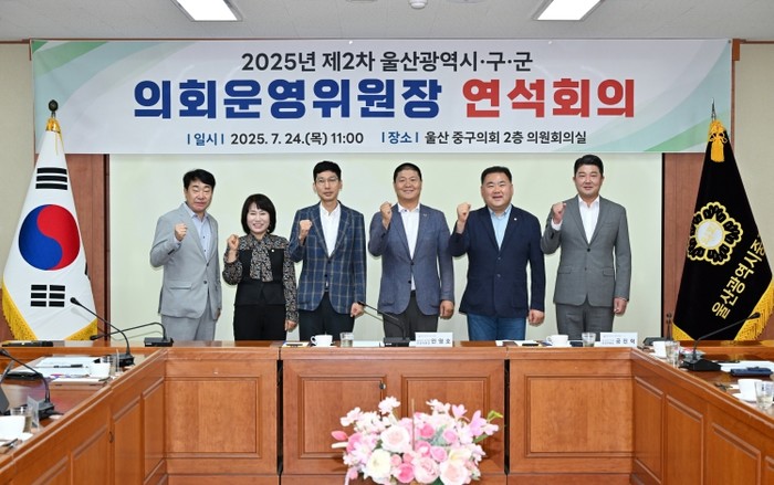 울산광역시의회와 5개 구·군 의회운영위원장들이 24일 중구의회 주관으로 ‘울산광역시 시·구·군 의회 운영위원장 연석회의’를 가졌다.