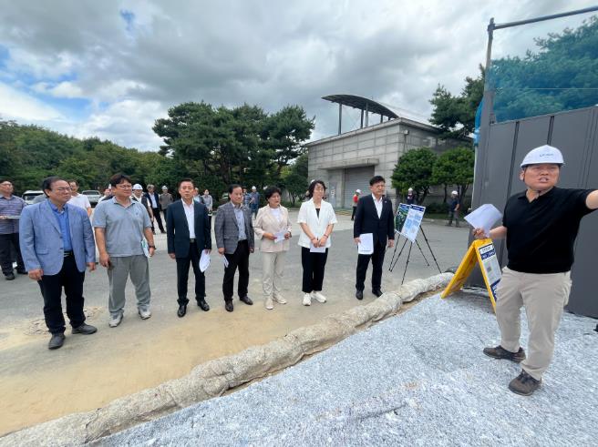 이어 하수처리 효율 향상과 수질 개선을 위해 진행 중인 ‘내수 공공하수처리시설 개량사업’ 현장을 방문하여 관계부서로부터 추진 상황을 보고 받은 후, 관계자의 설명과 함께 현장을 둘러보며 현장 의견을 수렴하는 시간을 가졌다.