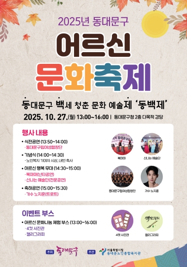 서울 동대문구는 오는 27일 구청 2층 다목적강당에서 '2025년 동대문구 어르신 문화축제 ‘동백제’'를 개최한다고 밝혔다.