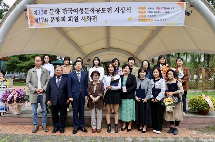 충주 문향회(회장 안애정)에서 주최하는 ‘제13회 문향전국여성문학공모전 시상식과 제17회 문향회 시화전 개막식’이 17일 호암지 생태공원 야외무대에서 열렸다.