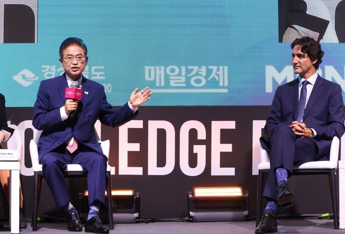 이철우 도지사는 9일, 서울 신라호텔에서 열린 세계지식포럼에서 쥐스탱 트뤼도 캐나다 前 총리와 ‘아시아태평양경제협력체(APEC)가 주도하는 포용적 성장’이라는 주제로 특별 대담을 나눴다.