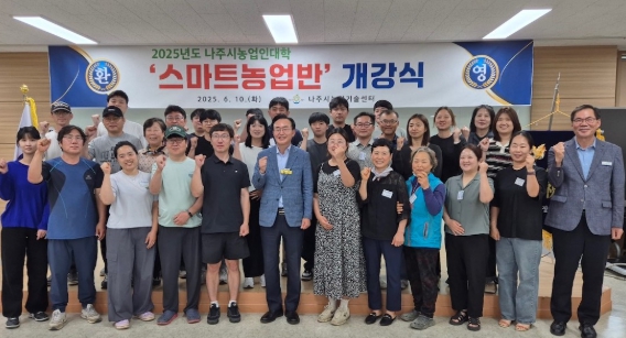 전라남도 나주시는 6월 10일 나주시농업기술센터 농업인 교육관에서 ‘2025년 나주시농업인대학 스마트농업반’ 개강식을 열고 스마트농업 전문 인력 양성을 위한 본격적인 교육을 시작했다.
