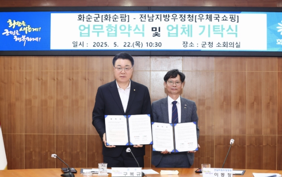 이날 체결된 협약에 따라 양 기관은 ▲화순군 농수축산물의 온라인 유통 활성화 ▲화순팜, 우체국 쇼핑몰 등 유통 채널을 통한 판매 촉진 ▲지역 상품 판매 수익을 활용한 취약계층 지원 등 다양한 분야에서 상호 협력하기로 했다.