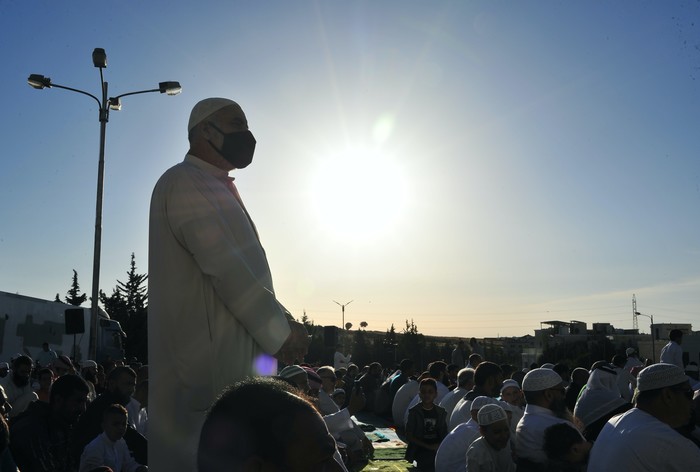 (프레스뉴스)채정병 특파원=31일(현지시간) 연일 40도를 육박하는 날씨 속에 한 요르단 남성이 메카 방향을 향해 '이드 알 아드하(희생제)' 명절 아침 기도를 하고 있다.