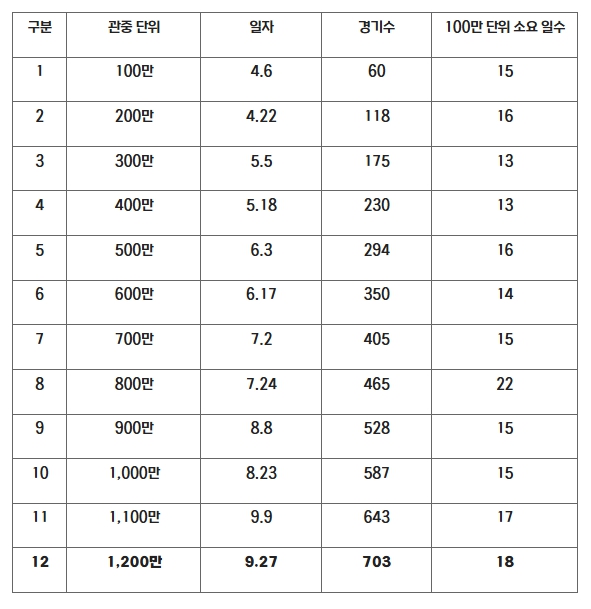 역대 최초 1,200만 관중 달성, 매 경기 신기록 경신