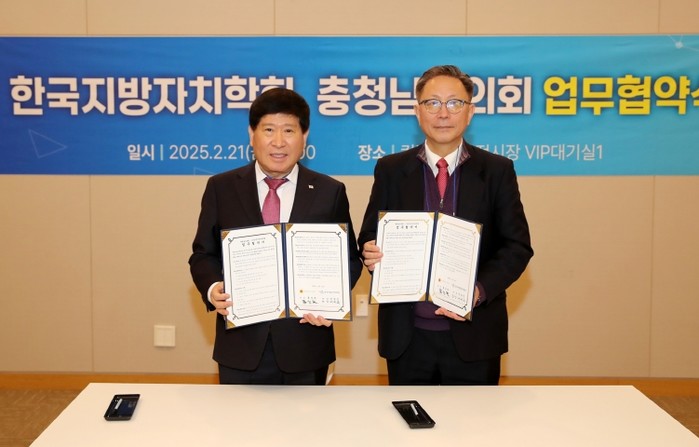 충남도의회는 지방자치 관련 전문 학회와의 교류 증진을 통해 의회 발전을 도모하고자 21일 경기도 일산 킨텍스에서 열린 사단법인 한국지방자치학회(회장 임정빈)와 업무협약을 체결하고, 상호 협력체계를 구축하기로 했다.
