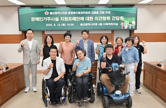 울산시의회 문화복지환경위원회 김종훈 의원은 12일 오후 3시 시의회 4층 다목적회의실에서 ‘장애인거주시설 지원 조례안에 대한 의견 청취 간담회’를 개최했다.