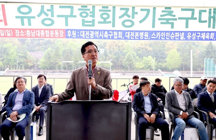 대전시의회 조원휘 의장은 20일 충남대학교 종합운동장에서 개최된 제7회 유성구협회장기 축구대회에 참석해 사고 없는 안전한 대회 진행을 기원하며 건강한 생활체육 문화 조성을 위한 지원을 약속했다.
