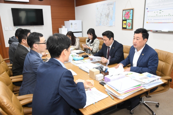 | ▲ 안대룡 교육위원장 김종솝 부의장 가칭 내황중 설립 관련 가온고 설문조사 결과 관련 업무 청취 |