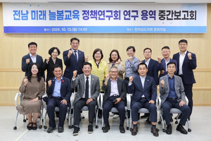 전라남도 의원연구단체 전남 미래형 늘봄교육 정책연구회(대표의원 정철)는 10월 13일 전라남도의회 중회의실에서 '전남 미래형 늘봄교육 모델개발과 학교 내외 안전사고 예방 방안 연구' 정책연구용역 중간보고회를 개최했다.