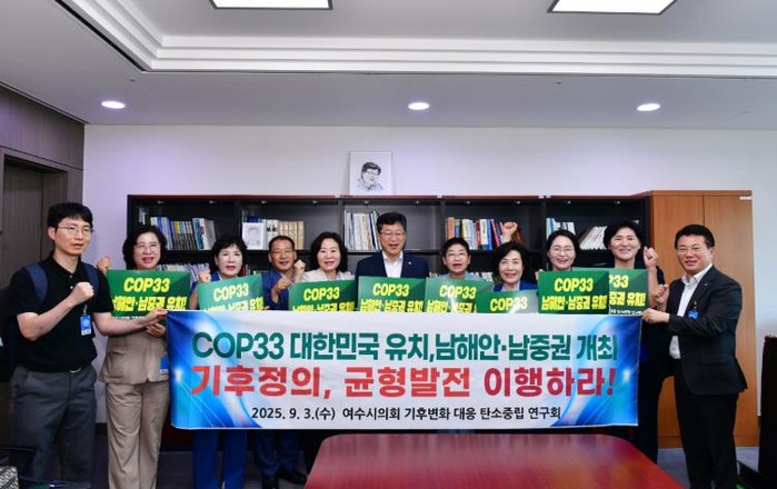 또 “남해안·남중권은 두 차례 유치 과정에서 국가적 양보를 감내했지만 정당한 보상을 받지 못한 지역”이라며, “이번 COP33 개최는 기후위기 대응과 기후정의 실현, 국가균형발전의 상징적 계기가 되어야 한다”고 말했다.