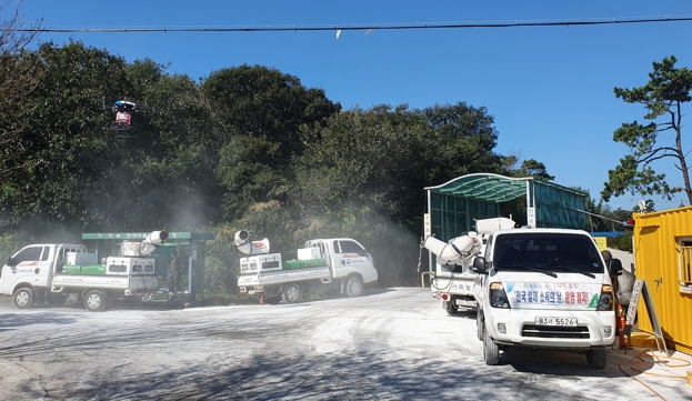 | ▲ 나주시가 아프리카돼지열병 추가 확산 방지를 위해 집중 소독을 실시하고 있다. |