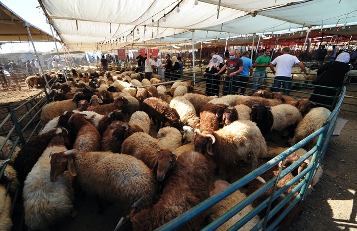 (프레스뉴스)채정병 특파원=이슬람의 율법에 따라 양을 잡는 '이드 알 아드하' 명절 아침, 도심의 한 양시장이 북적이고 있다.