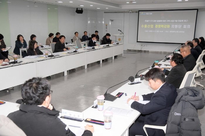 광주광역시(시장 강기정)는 11일 시청 소회의실에서 이상갑 문화경제부시장 주재로 ‘수출산업 경쟁력강화 지원단’(이하 ‘지원단’) 회의를 개최했다.