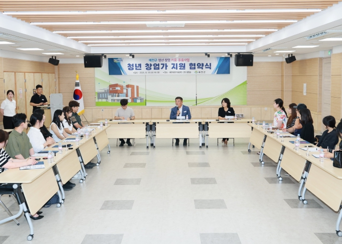예천군은 20일, 예천희망키움센터 2층 회의실에서 ‘예천군 청년 창업 키움·돋움사업’을 통해 선정된 14팀의 청년 창업가들이 참여한 가운데 ‘청년창업 키움 돋움사업 지원 협약식’을 개최했다.