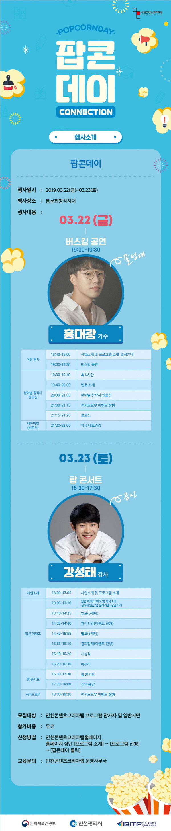 오는 22일, 23일에 걸쳐 틈 문화창작지대에서 열리는 팝콘데이는 멘토스피치, 창작자 네트워킹, 팝 콘서트, 데모데이 등 창작자들 간 자유로운 소통과 융합 창작 활동으로 구성된다.