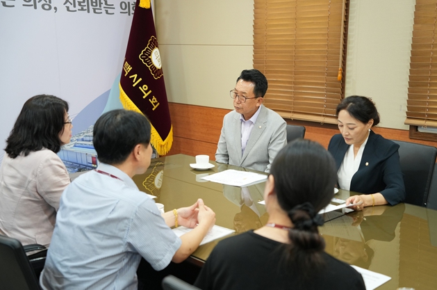 평택시의회 강정구 의장과 김명숙 부의장은 18일, 시의회 의장실에서 김미선 국민건강보험공단 평택지사장을 접견해 평택 시민의 건강한 삶을 위한 상호 협력 방안을 논의했다.