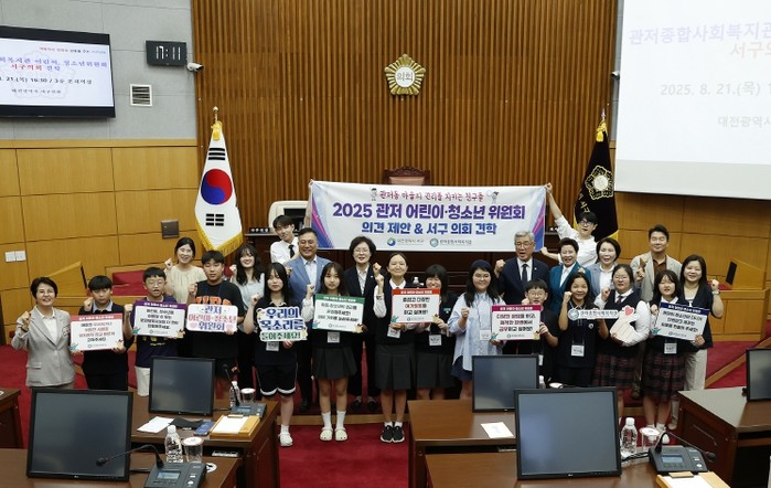 대전 서구의회는 21일 관저종합사회복지관 어린이·청소년위원회 위원들이 의회를 방문해 의정 현장을 견학했다고 밝혔다.