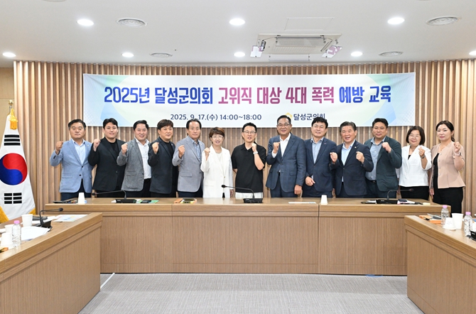 달성군의회는 9월 17일 의회 1층 회의실에서 ‘2025년 4대 폭력 예방교육’을 실시했다.